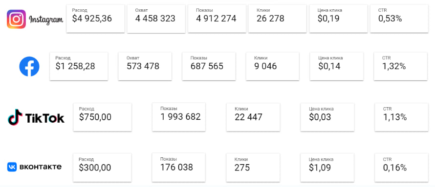 Во-вторых, технические ограничения: у нас не было возможности установить Пиксель или Метрику (отсутствовал сайт), поэтому мы опирались только на данные рекламных кабинетов.
