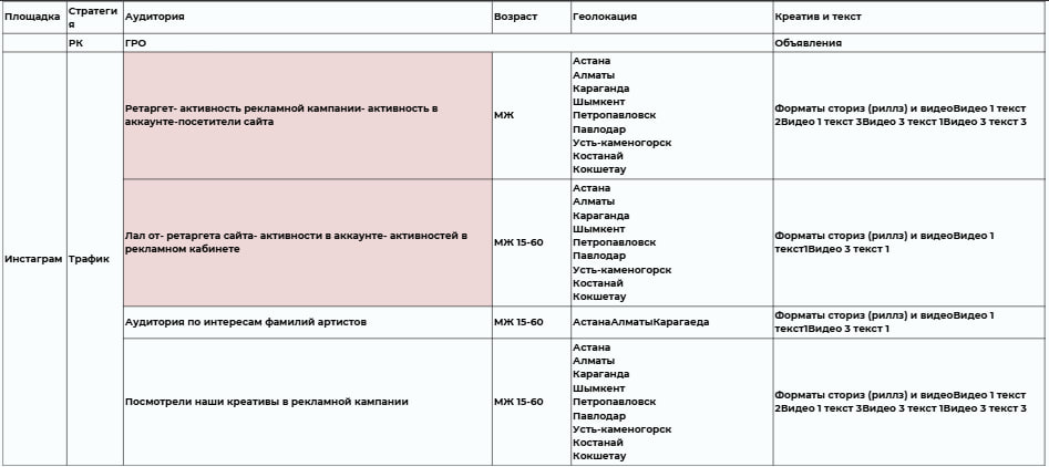 Финальный этап. Распределение денег не абстрактно "на Инстаграм", а на конкретные работающие стратегии внутри канала.