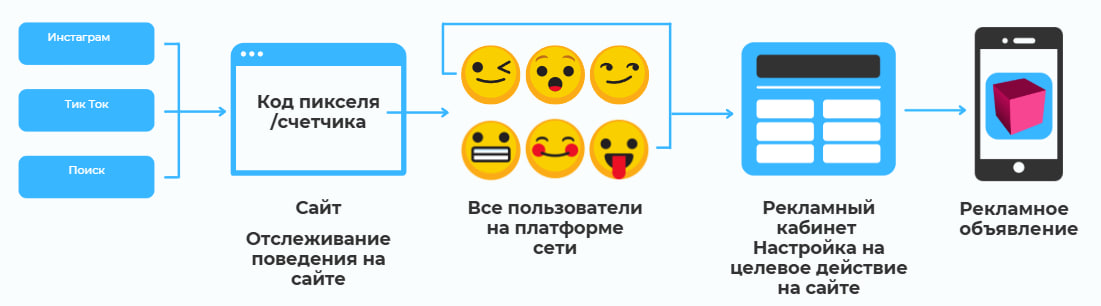 Как именно мы касаемся аудитории? Холодный трафик, ретаргет на посетителей, поиск похожих (LAL).
